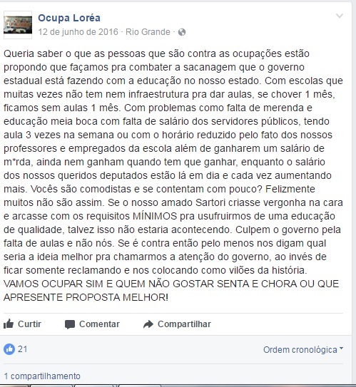 Ocupações secundaristas através do facebook: Governamentalidade e heterotopia