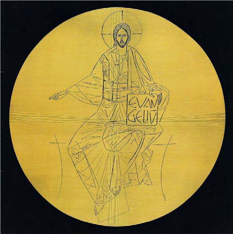 É Cristo na forma humana que diviniza o ser humano. É o círculo sobre o quadrado, o círculo Deus e o quadrado homem. O dourado é a luz divina que ilumina o quadrado negro que é a humanidade.