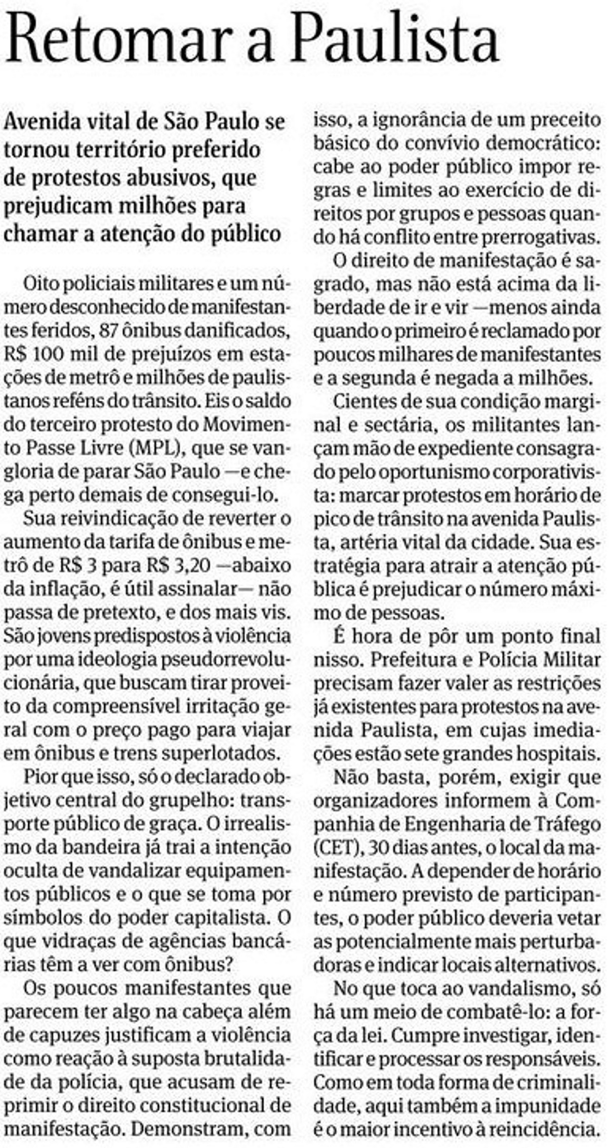 O corpo do manifestante das Jornadas de Junho de 2013: a charge e o editorial da Folha de São Paulo