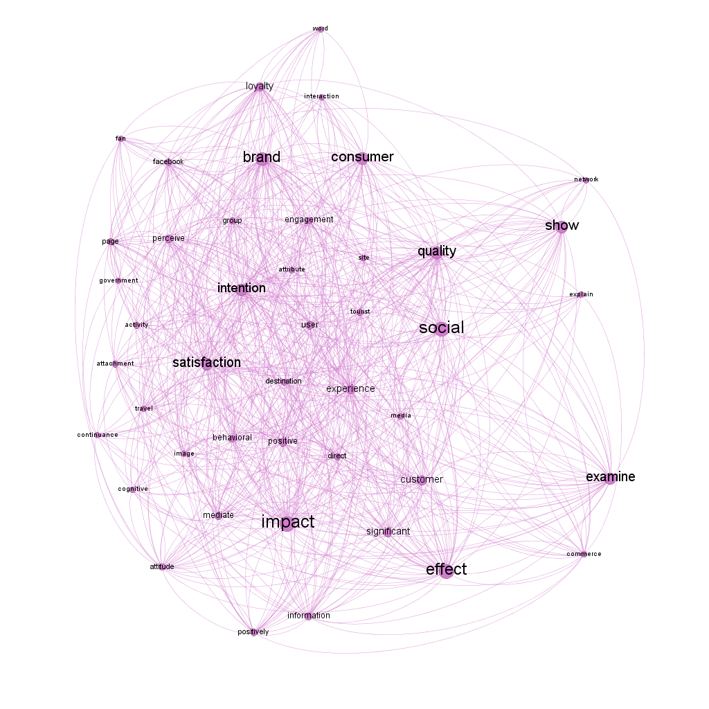 The other five words with the highest betweenness centrality are "influence," "impact," "Social," "effect," and "brand." We thought it would be interesting to highlight these words to show how the Second Order SEM-PLS is used in another research. The words influence, impact, and effect show that the studies are attempting to understand the relationships between the variables, which is the logic behind using this method. The words social and brand attract attention because they indicate that studies are being conducted for social research, particularly in relation to brands, which are most likely related to advertising or marketing.