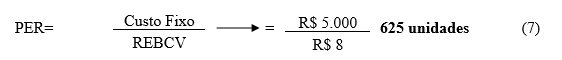 Com esta informação já é possível calcular o ponto de equilíbrio da redução ( PER-unidades) em quantidades para este caso.