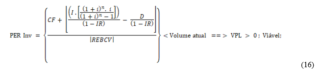 Se o ponto de equilíbrio da redução com investimento (PER-Inv) em unidades for menor do que o volume de produção atual, então o valor presente líquido do fluxo de caixa será positivo e o projeto é viável. Tem-se a expressão matemática: