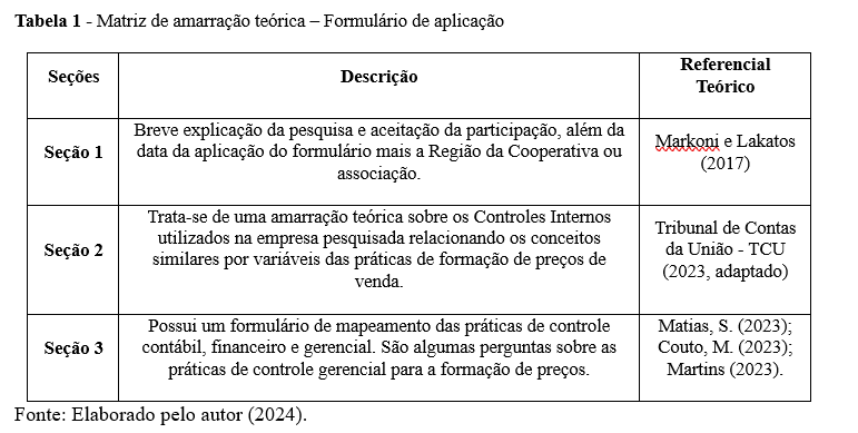 O formulário eletrônico utilizado para a coleta de dados junto aos artesãos das duas feiras de artesanato de Pernambuco, a Fenearte e a Fenahall foram divididos em três seções conforme é evidenciado na matriz de amarração da Tabela 3.
