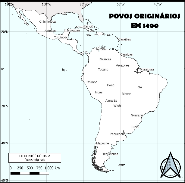 Figura 1: Povos originários em 1400, mapa elaborado pelo autor. |