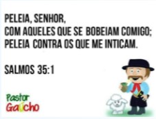 Figura 4 - Salmos 35:1 sendo pregado segundo o Pastor Gaúcho, evangelizando sempre acompanhado de sua fiel ovelha, e com o chimarrão na mão direita e a Bíblia Sagrada na esquerda16.17