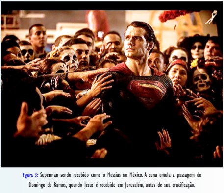 O filme Batman Vs Super Homem (Snyder, 2016) faz referência ao Superman como se fosse um messias, sendo que o herói é chamado por alguns de falso deus, inclusive, o vilão Lex Luthor, afirmando como ele esperou ajuda dos Céus (no caso, ajuda de Jesus) e não foi atendido, mas depois de adulto surge esse “homem que caiu do céu” personificando o “Jesus Cristo” da Bíblia, ele tem poderes e quer ajudar a todos. Mas o vilão, assim como os religiosos da época de Jesus, faz de tudo para provar a sua teoria de que ele é perigoso para humanidade.