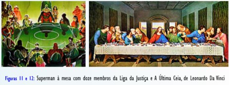 Outra referência do Superman na obra como o messias da fé cristã se dá quando os heróis estão reunidos no satélite da Liga da Justiça e o Homem de Aço aparece ao centro com seis super-seres de cada lado, fazendo referência ao quadro A Última Ceia, de Leonardo da Vinci.