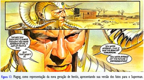 Depois que o Superman sai de cena e se aposenta, um novo herói surge em seu lugar, exercendo a justiça com as próprias mãos, Magog13! Visualmente ele é carregado de simbolismos, com chifres, cicatrizes e culpando o Superman pelo que estava acontecendo com o mundo, deixando o ser humano escolhendo que herói deve representá-lo na luta contra o mal e a injustiça.