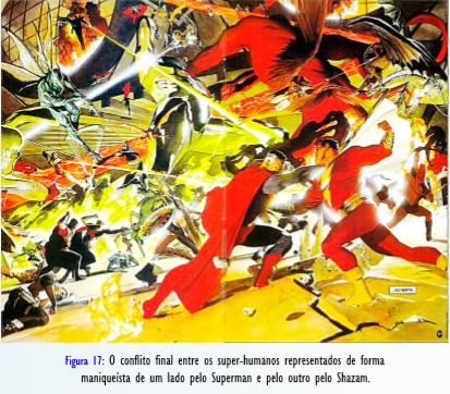 “Those who, a decade previous, felt the crush of Superman’s greatest and most necessary faillure, his perceive himself as the inspiration he is.” Kingdom Come is totally connected to this quotation, rescues the classic heroes of DC Comics, when the publishing market looked for stories full of violence and with visually impressive characters but with puerile stories. After Superman decides to abandon his vocation as hero and savior of humanity, society is in crisis and awaits his return, which is shown in the story making an intertextuality with the book of Revelation written by the apostle John. Superman is portrayed as the messiah of the Christian faith, which is the background to the creation of the superhero and is exploited to the extreme in this story and on other platforms in which the Man of Steel starred. Among the analysis of these topics, the plot gains body from the observation of the visual and symbolic elements explored in this graphic novel. Because these elements, the intertextuality expands and illustrates the personality of the hero not only in the book of Revelation but also in other biblical passages, rescuing some interfaces between Superman and Jesus Christ.”