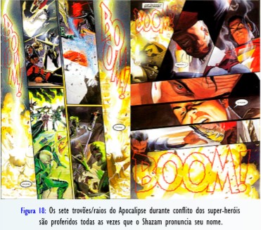 Durante o conflito, o poder mágico do Shazam, um herói tão forte quanto o Superman, com poderes místicos, evoca raios contra o herói sete vezes, da mesma forma como é retratado no texto de Apocalipse. “E clamou com grande voz, como quando ruge um leão; e, havendo clamado, os sete trovões emitiram as suas vozes.” (Apocalipse 3.10)
