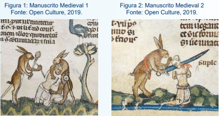 De pronto, a imagem de coelhos pululando e ameaçando toda a ordem social não é nova: para além dos relatos das religiões monoteístas, para as quais gafanhotos, anfíbios e roedores são flagelos, sinais da ira divina contra um povo, já que destroem rapidamente suas colheitas e seus meios de subsistência, havia, na Idade Média, em especial por meio de gravuras e representações, essa estranha imagem de “coelhos algozes” e lebres que caçavam humanos. Senão vejamos nas figuras abaixo: