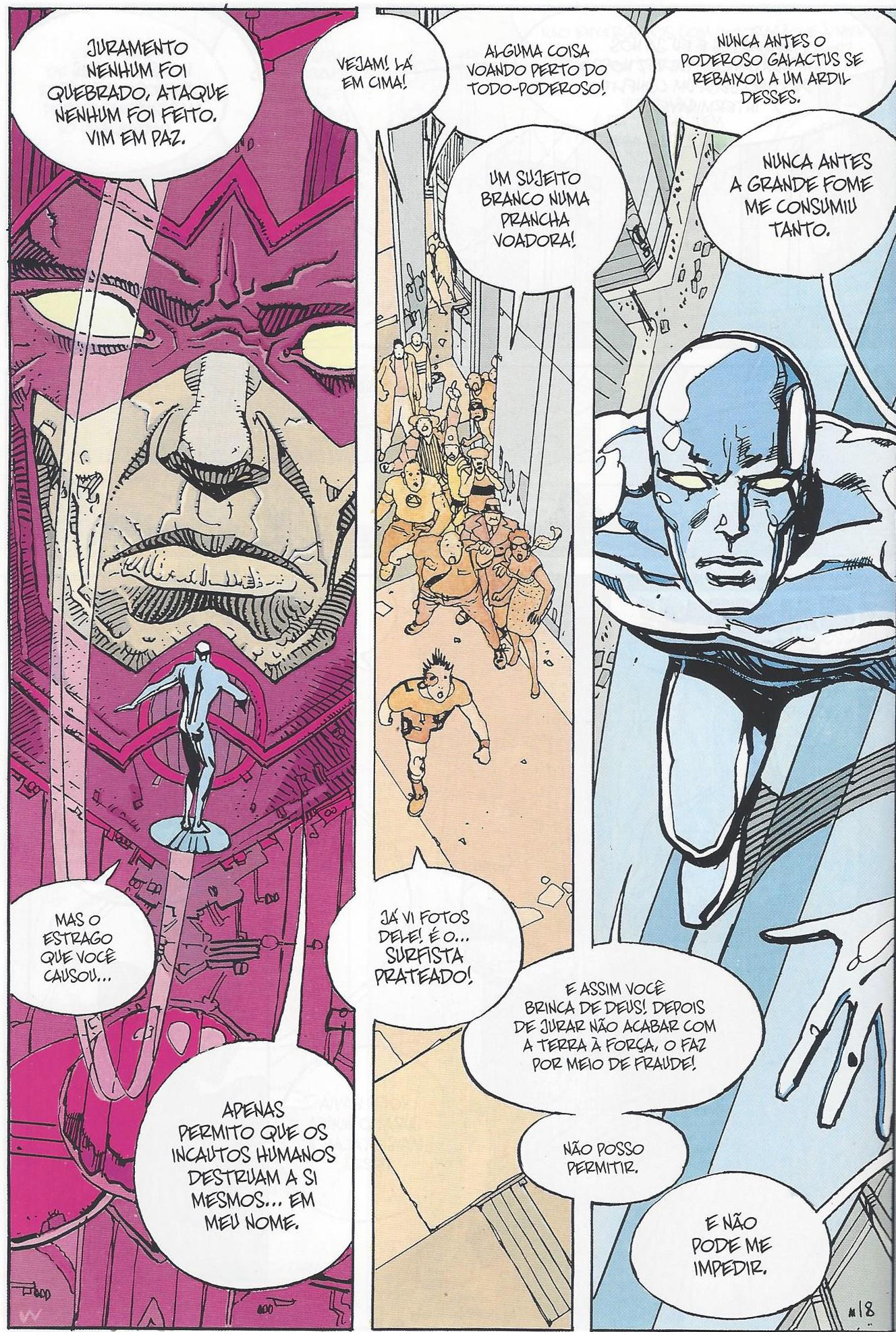 O único ser capaz de ler as intenções de Galactus e lutar para expor o plano maquiavélico do vilão é o Surfista Prateado que, indignado com a facilidade com que a humanidade se rende à fé cega, consegue mais uma vez expulsar a entidade cósmica da Terra. Contudo, ao final do embate, a população elege o Surfista Prateado como uma figura divino-messiânica com a mesma rapidez que havia feito com Galactus, não deixando outra opção ao herói a não ser fingir-se um déspota para evitar que a humanidade cometa o mesmo erro mais uma vez.