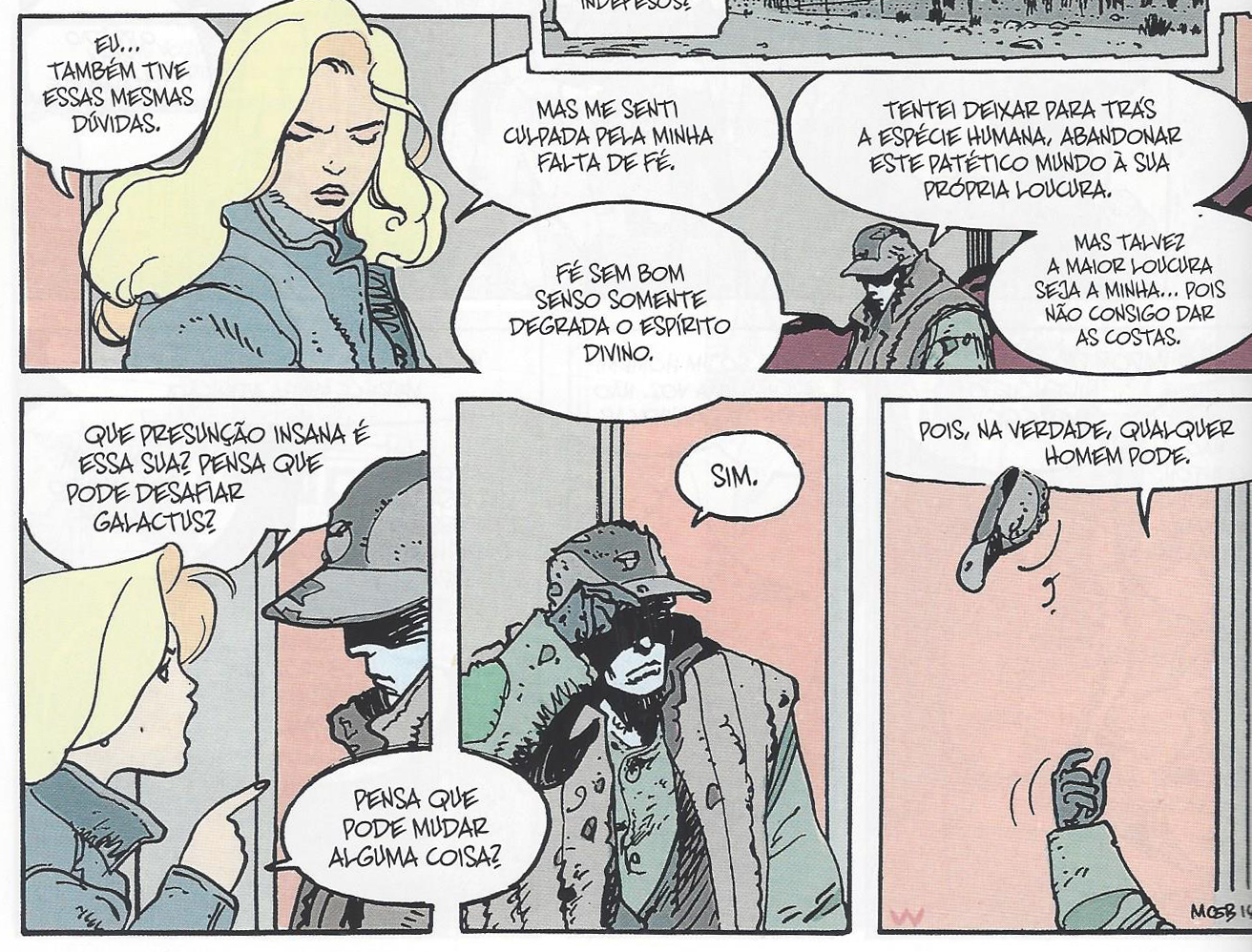 [8] Talvez seja possível argumentar que a “grandeza” de Galactus se manifeste também nas ocasiões em que é enfatizado o seu poder: “o poder é meu” (p. 16), “ninguém ousa” (p. 17), “seu poder” (p. 17), “ele é o poder” (p. 21), “poderoso demais” (p. 24).